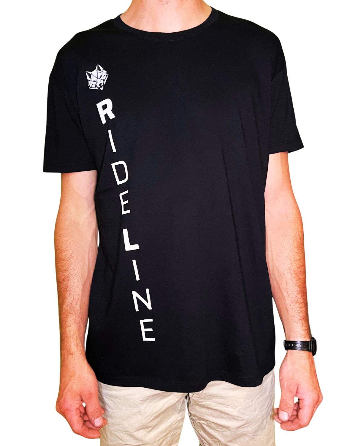 Affirmé et indomptable, ce T-shirt noir se distingue par son marquage vertical RideLine, accompagné de la tête de loup emblématique de la marque.
